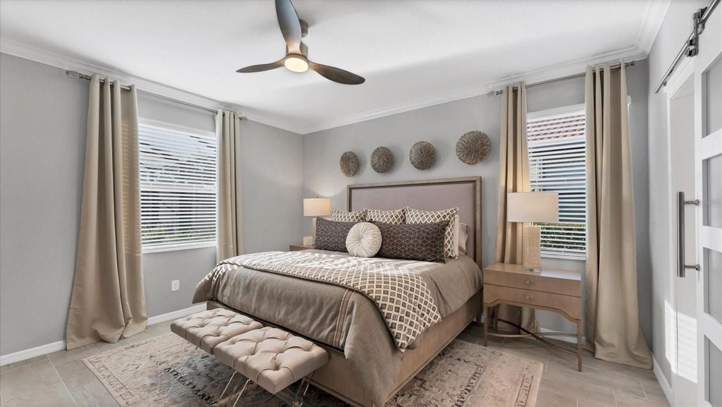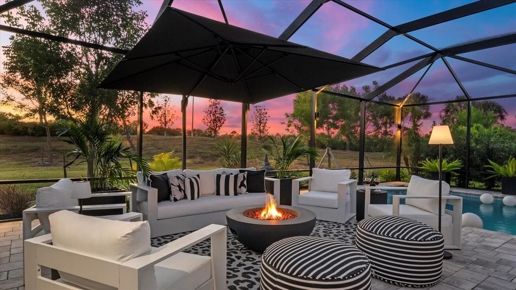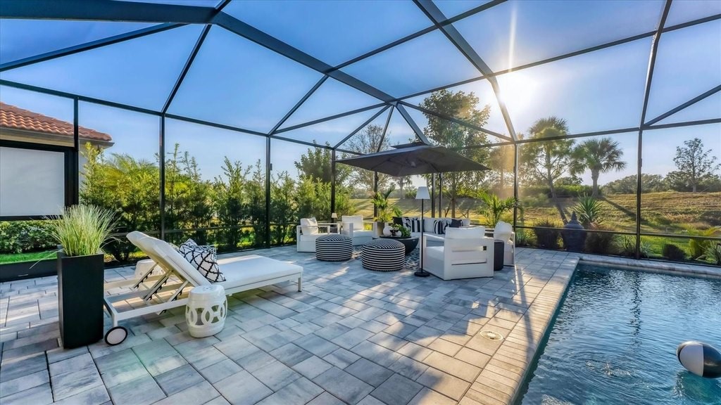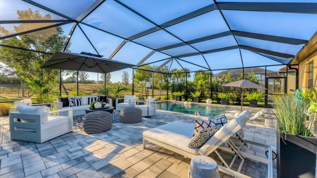 Breathtaking 3-Bedroom, 3-Bath Home with Designer Finishes & One-of-a-Kind Pool Oasis in Sarasota National! This exquisitely maintained 3-bedroom, 3-bathroom home is the perfect fusion of style, function, and luxury. Designed with intention and a refined neutral palette, every space reflects quality and sophistication. From the tile flooring and crown molding throughout to the thoughtfully updated bathrooms with new lighting and modern frosted paneled doors, including a sleek barn door, custom primary closet organizer, the attention to detail is truly unmatched. The main living area features electric blinds for comfort and convenience, and bifold doors have been upgraded to modern frosted glass panels, seamlessly complementing the homes, modern aesthetic. But the true showstopper is the outdoor living space, an entertainer's paradise. The outdoor oasis is unmatched in the area, offering over 1,800 sq ft of outdoor living -with a unique design and features that set it apart: Sun deck with lounges, Spa bubblers, Full-length in-pool bench seating, perfect for gatherings, Outdoor TV, Ambient up and down lighting for a true resort feel, Private setting with serene pond view, lush, professional landscaping accenting the pool area, Kevlar hurricane shade for reliable storm protection, And best of all, the pool area will remain furnished for the new homeowner, making this a move-in-ready retreat! All of this is located within Sarasota National, a rich amenity community offering: Tennis courts, Pickleball courts, Bocce ball, Resort-style pool and lap pool, Dog park, One of the largest bird sanctuaries in the state right within the community, On-site restaurants and bars...A welcoming atmosphere to enjoy all year round! The front yard landscaping, enhanced by striking up-lighting, completes the home's exceptional curb appeal. This home will leave you breathless. With stylish upgrades, unmatched outdoor living, and the most outstanding pool in the area, all in a resort-style community, it stands far above the rest. Schedule your private showing today!